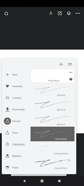 Hit the brush icon and select the type of brush to start drawing on your canvas